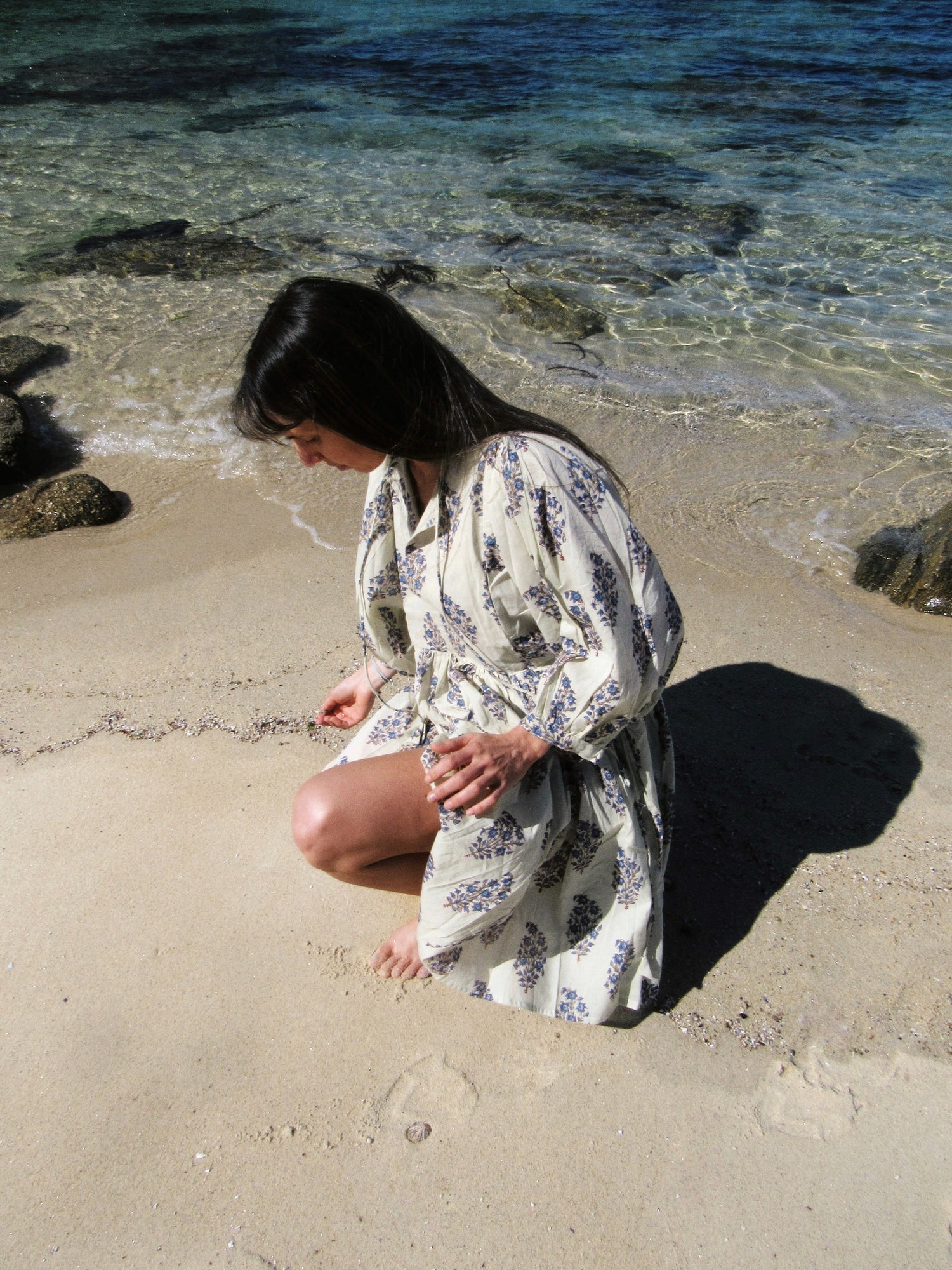 Cada prenda es 100% hecha a mano, siguiendo la tradicional técnica india de Block Print, donde cada estampado se aplica manualmente con sellos tallados a mano. Un arte milenario que da vida a piezas únicas y llenas de historia.