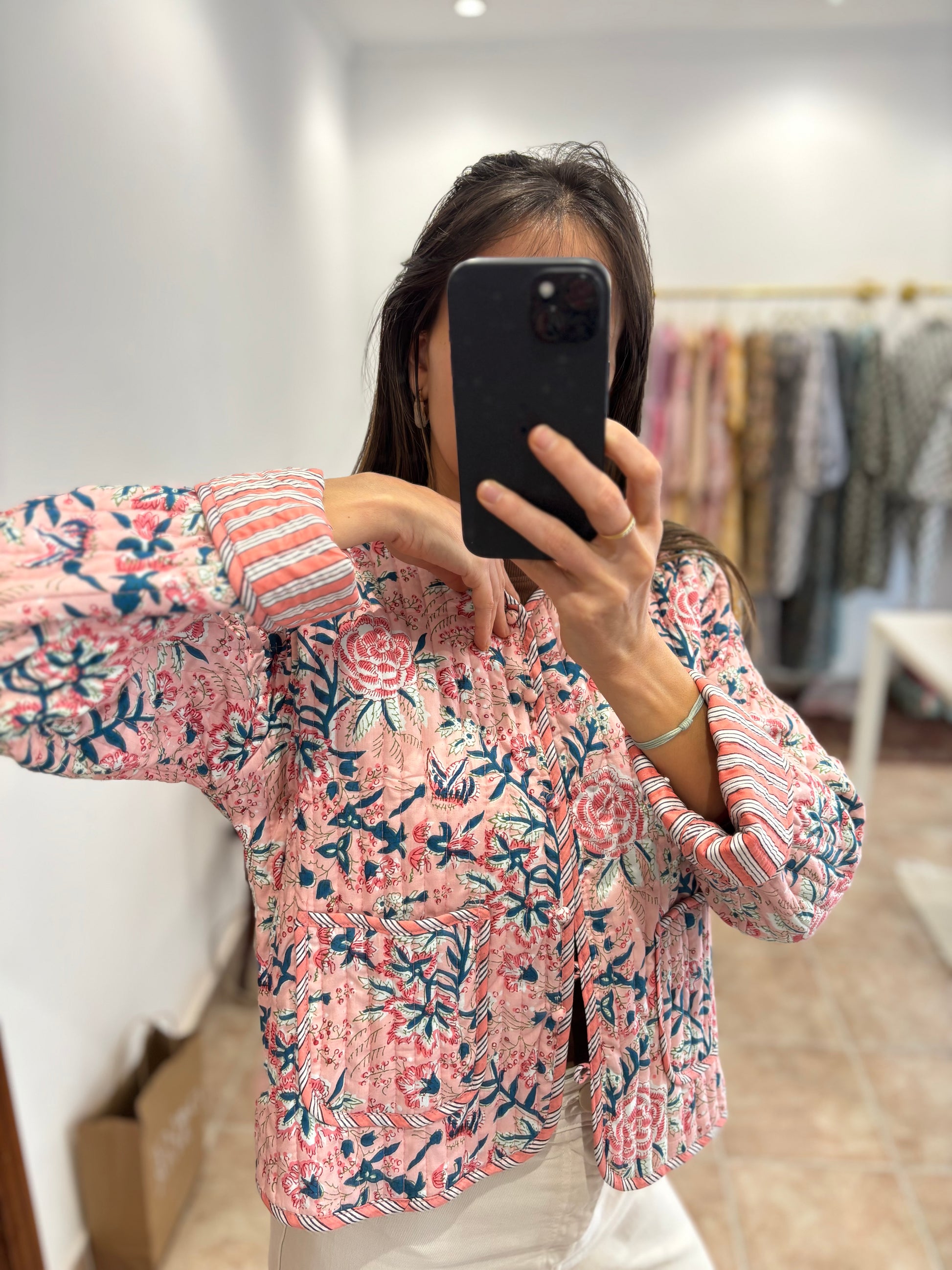 Nuestra chaqueta Block Print es una prenda única, estampada a mano con la tradicional técnica artesanal. Su diseño ligero, versátil y reversible la hace ideal para cualquier ocasión, aportando un toque bohemio y sofisticado a tu look.