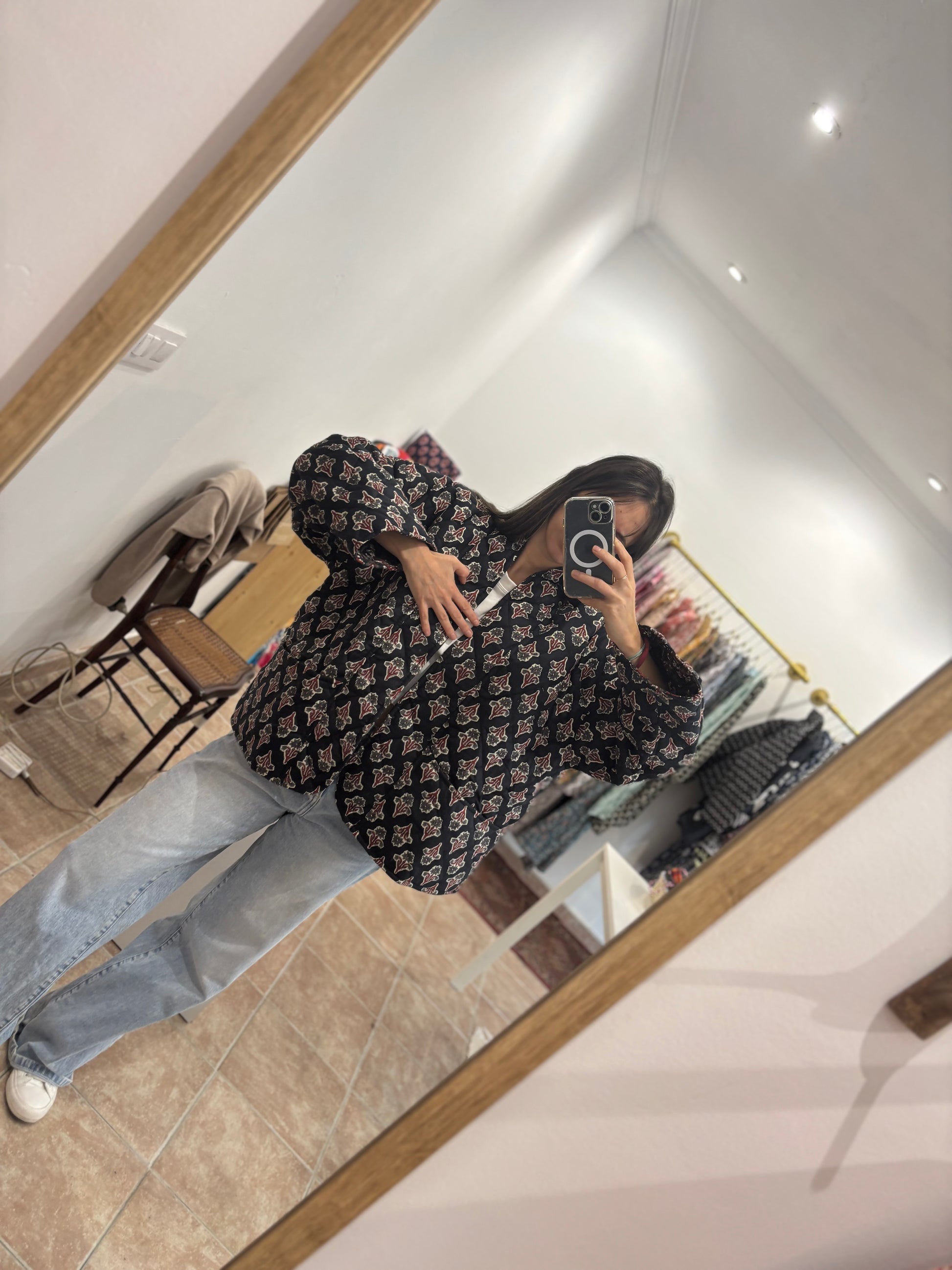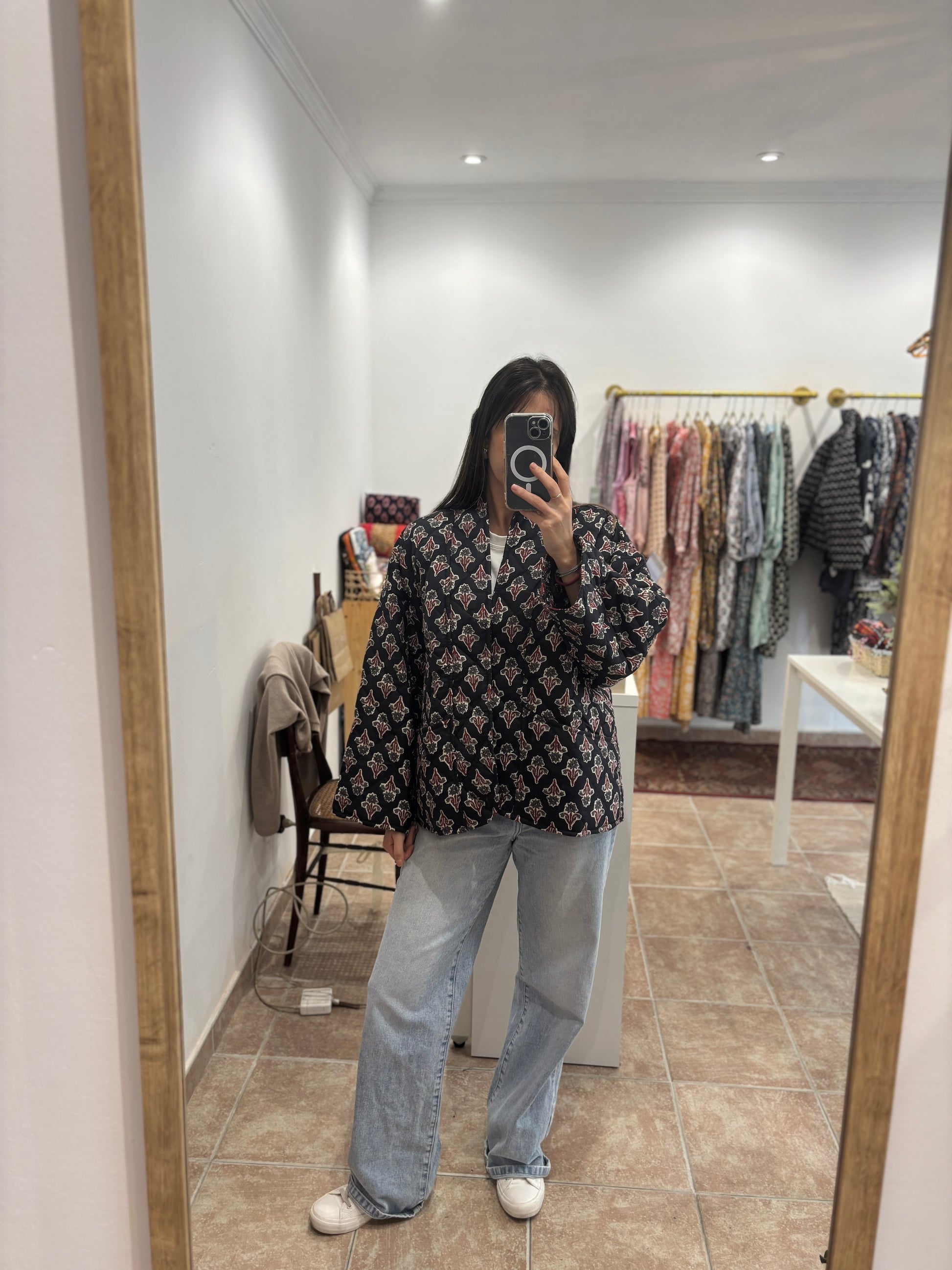 Nuestra chaqueta Block Print es una prenda única, estampada a mano con la tradicional técnica artesanal. Su diseño ligero y versátil la hace ideal para cualquier ocasión, aportando un toque bohemio y sofisticado a tu look.