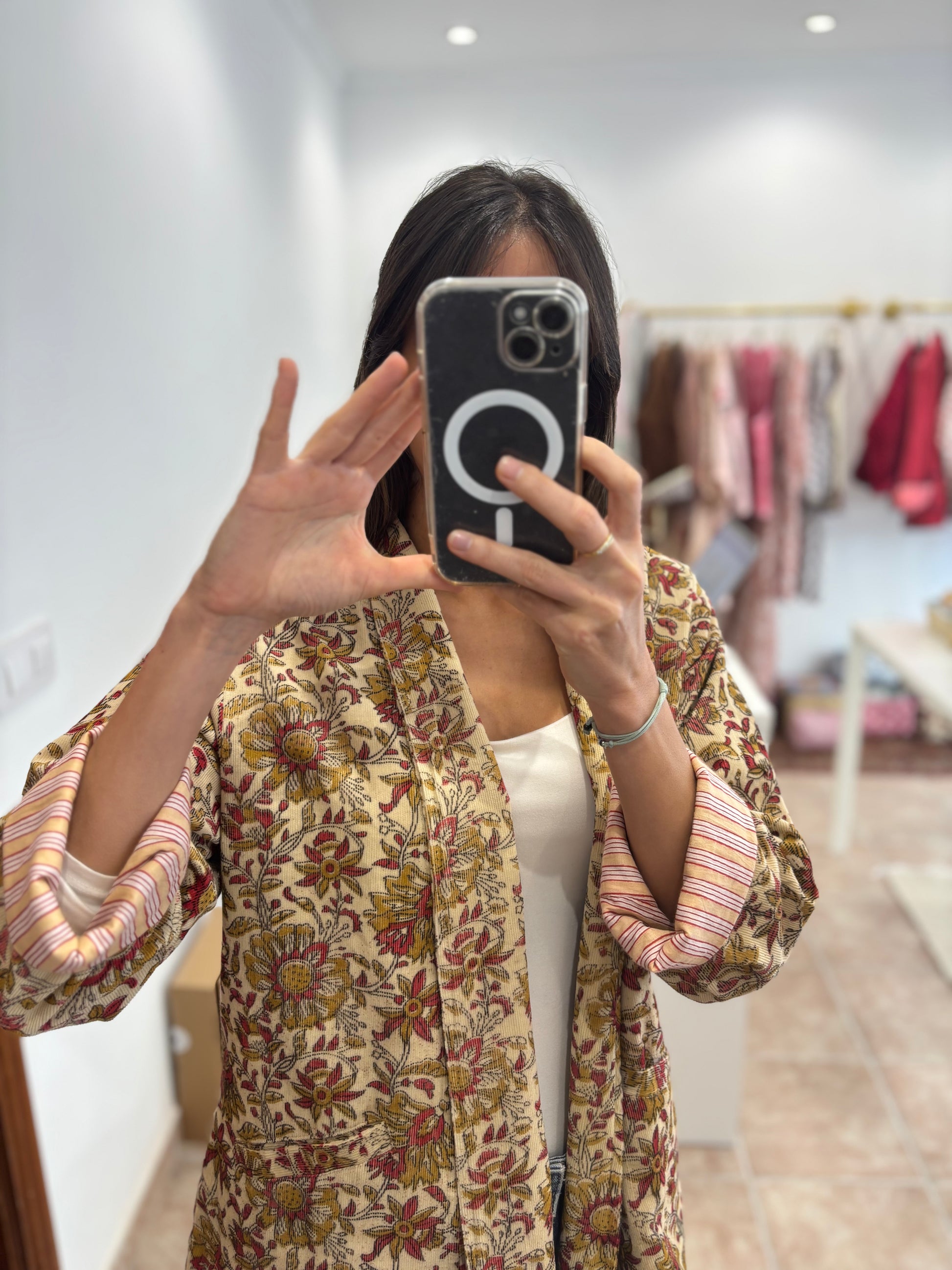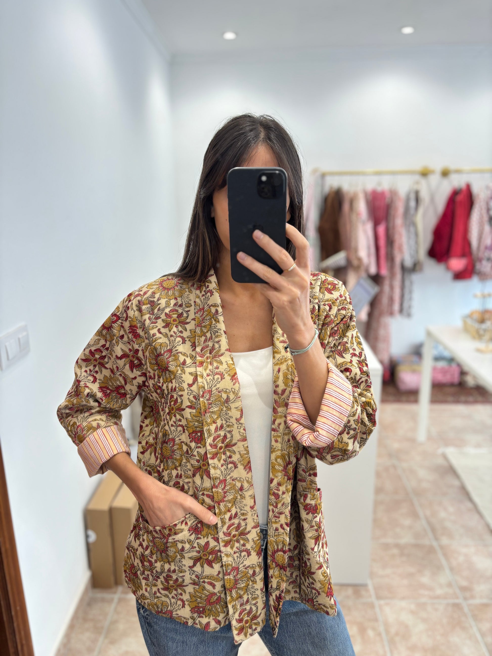 Chaqueta pintada a mano, hecha 100% de algodón, estilo kimono. Talle único. Hermosa en colores, ideal para darle un toque artístico y original a tu look.