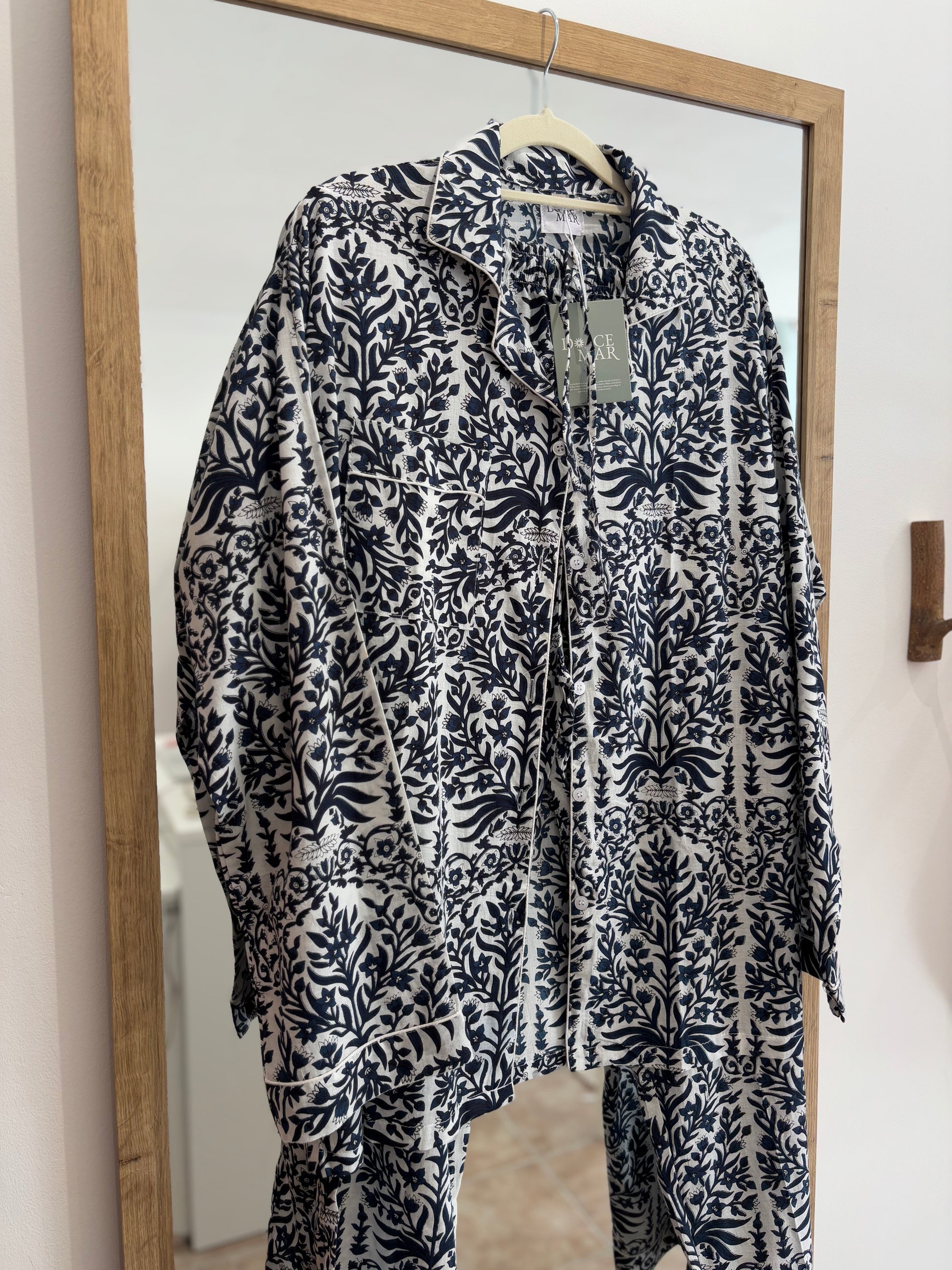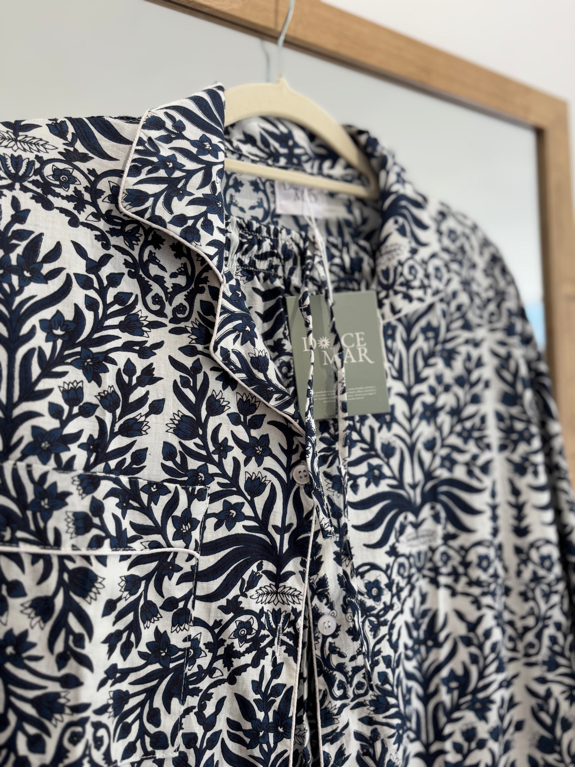 Nuestros pijamas Block Print son 100% algodón, artesanales y con estampados únicos hechos a mano con bloques de madera. Son suaves, frescos y cómodos, ideales para dormir o estar en casa. Cada detalle está cuidado para que tu descanso sea relajado y lindo.